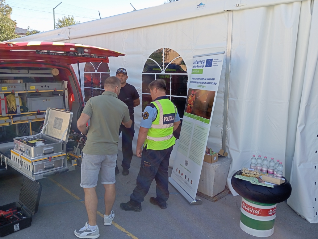 Ob tem smo jim predstavili projekt KARST SAFE ter razdelili letake s preventivnimi ukrepi za zmanjšanje tveganja širjenja požara iz narave na bivalno okolje. Otroci so bili nad zgibanko zelo navdušeni, saj so bile preventivne vsebine prikazane na zanimiv in slikovit način.