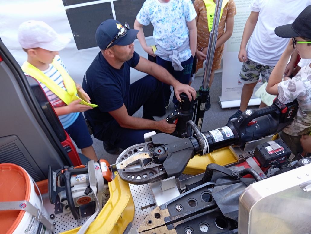 Otrokom smo predstavili naše vozilo HTRV, namenjeno reševanju ob prometnih in tehničnih nesrečah. Pokazali smo jim tudi opremo, ki se uporablja pri tehničnem reševanju.